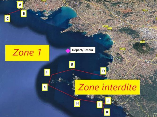 8h00 : Regroupement des bateaux à la sortie du port du Brusc et départ ensemble vers la zone de compétition.